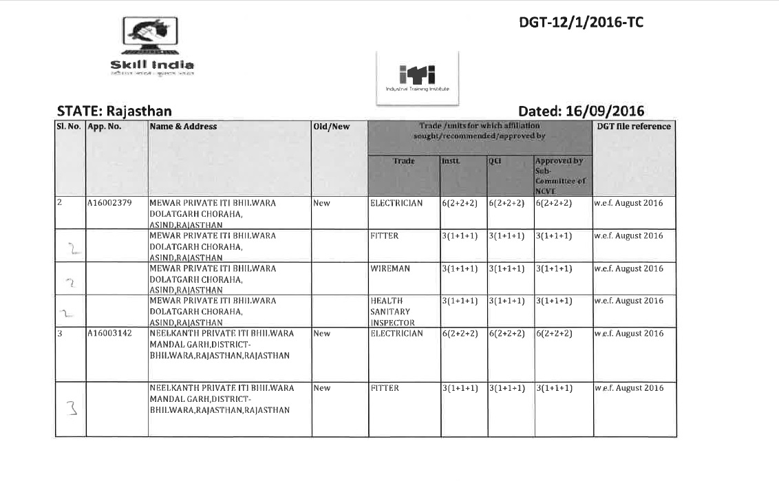 MEWAR PVT ITI, ASIND, BHILWARA